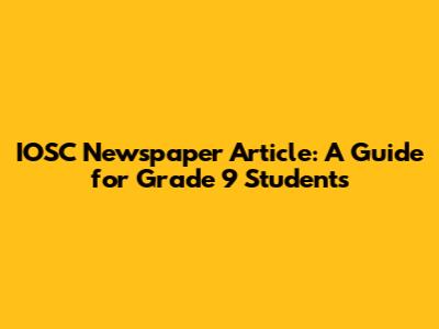 IOSC Newspaper Article: A Guide For Grade 9 Students