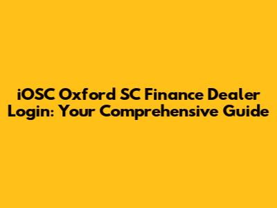 IOSC Oxford SC Finance Dealer Login: Your Guide