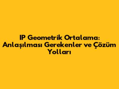 IP Geometrik Ortalama: Anlaşılması Gerekenler Ve Çözüm Yolları
