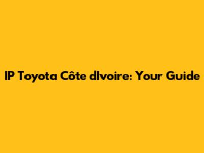 IP Toyota Côte D'Ivoire: Your Guide