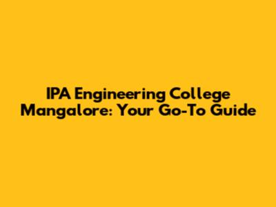 IPA Engineering College Mangalore: A Comprehensive Guide