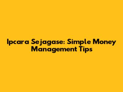 Ipcara Sejagase: Simple Money Management Tips