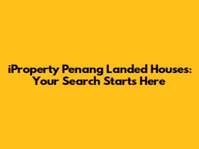 IProperty Penang Landed Houses: Your Search Starts Here