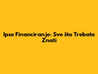 Ipse Financiranje: Sve Što Trebate Znati