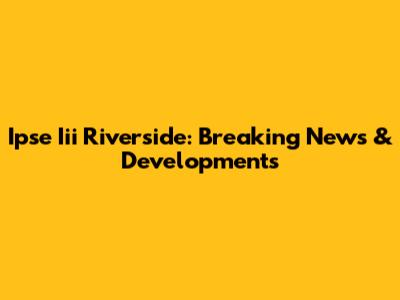 Ipse Iii Riverside: Breaking News & Developments