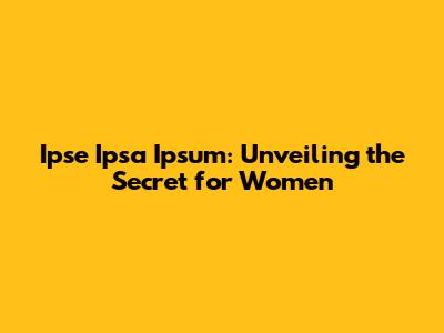 Ipse Ipsa Ipsum: Unveiling The Secret For Women