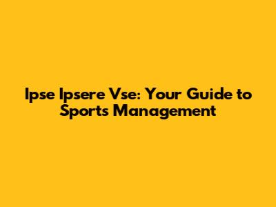 Ipse Ipsere Vse: Your Guide To Sports Management