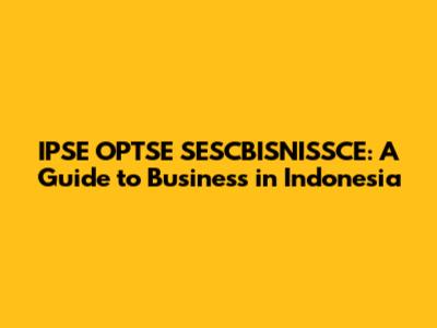 Hey guys! Planning to dive into the Indonesian business landscape? You've probably stumbled upon some acronyms like IPSE, OPTSE, and SESCBISNISSCE. Don't worry, it might sound like alphabet soup, but we're here to break it down for you. This guide will walk you through what these terms mean and how they relate to doing business in Indonesia. Let's get started!