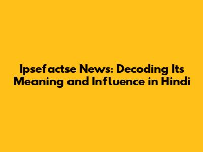 Ipsefactse News: Meaning And Impact In Hindi Explained