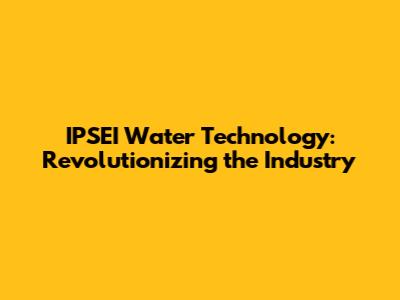 IPSEI Water Technology: Revolutionizing The Industry