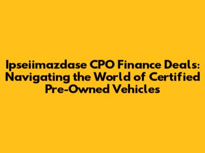 Hey there, car enthusiasts! Let's dive into the exciting world of Ipseiimazdase CPO finance deals. If you're anything like me, you're always on the lookout for a sweet deal, especially when it comes to buying a car. Certified Pre-Owned (CPO) vehicles offer a fantastic middle ground between buying brand new and taking your chances with a used car. And when you throw in some smart financing, you've got a recipe for a winning situation. In this guide, we'll break down everything you need to know about Ipseiimazdase CPO finance deals, so you can confidently cruise towards your next car purchase. We'll be talking about the advantages of CPO programs, how to find the best financing options, and tips for negotiating like a pro. So buckle up, and let's get started!