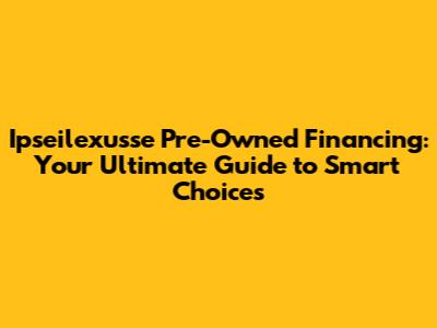 Hey guys, let's dive into the world of Ipseilexusse pre-owned financing! Buying a pre-owned car can be a fantastic way to get a great vehicle without the new-car price tag. But, navigating the financing options can sometimes feel a bit overwhelming, right? That's where this guide comes in! We're going to break down everything you need to know about getting your hands on an Ipseilexusse (or any other brand, really!) through pre-owned financing. We'll cover what it is, how it works, what to look for, and even some smart tips to help you get the best deal possible. So, buckle up, and let's get started on your journey to owning that dream car!