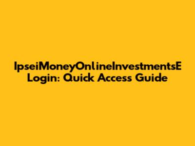 IpseiMoneyOnlineInvestmentsE Login: Quick Access Guide
