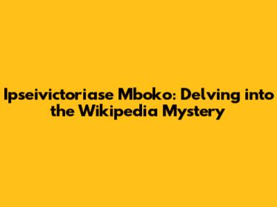 Ipseivictoriase Mboko: Unveiling The Wikipedia Enigma