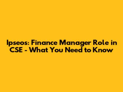 Ipseos: Finance Manager Role In CSE - What You Need To Know