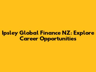Ipsley Global Finance NZ: Explore Career Opportunities