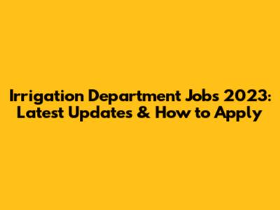 Irrigation Department Jobs 2023: Latest Updates & How To Apply