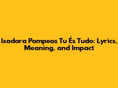 Isadora Pompeo's 'Tu És Tudo': Lyrics, Meaning, And Impact
