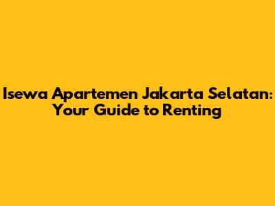 Isewa Apartemen Jakarta Selatan: Your Guide To Renting