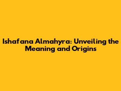 Ishafana Almahyra: Meaning And Origins