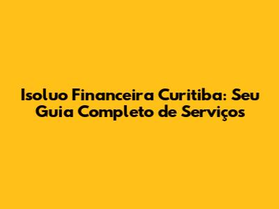 Isoluo Financeira Curitiba: Seu Guia Completo De Serviços