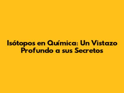 Isótopos En Química: Descubre Su Significado Y Aplicaciones