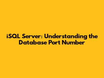 Understanding the iSQL Server database port number is fundamental for anyone working with SQL Server. It's not just about knowing the default port; it's about understanding why it's important, how to find it, how to configure it securely, and how to manage it effectively. By following the guidelines and best practices outlined in this article, you can ensure that your iSQL Server instances are accessible, secure, and well-managed.