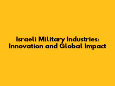 Israeli Military Industries: Innovation And Global Impact