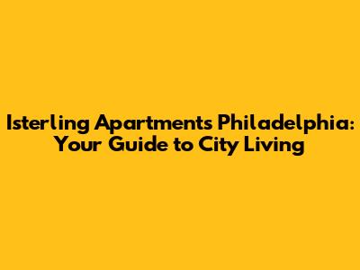 Isterling Apartments: Your Guide To Philly Living
