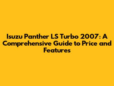 Hey guys! Are you curious about the Isuzu Panther LS Turbo 2007? This article is your one-stop shop for everything you need to know about this popular Indonesian MPV (Multi-Purpose Vehicle). We will dive deep into its price, features, what to look for when buying, and why it remains a solid choice for many families and businesses. Get ready to explore the world of the Isuzu Panther LS Turbo 2007 and see if it's the right vehicle for you!