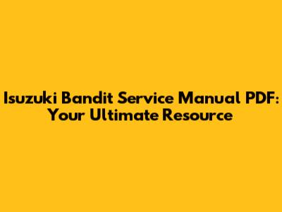 Isuzuki Bandit Service Manual PDF: Your Complete Guide