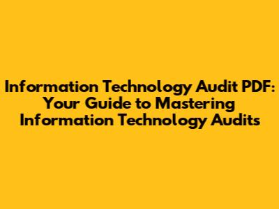 Are you looking to dive into the world of information technology audits? Maybe you're a seasoned professional seeking to brush up on the latest techniques, or perhaps you're just starting your journey in IT governance and risk management. Either way, understanding the ins and outs of an IT audit is crucial in today's digital landscape. In this article, we'll explore what an information technology audit PDF entails, why it’s important, and how you can effectively use these resources to enhance your skills and knowledge.