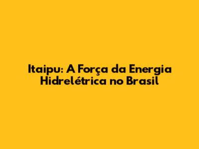 Itaipu: A Força Da Energia Hidrelétrica No Brasil