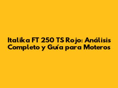 Italika FT 250 TS Rojo: Análisis Completo Y Guía Para Moteros