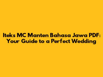 Iteks MC Manten Bahasa Jawa PDF: Your Guide To A Perfect Wedding
