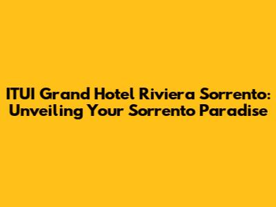 Hey there, travel enthusiasts! Ever dreamed of a getaway that combines breathtaking views, luxurious comfort, and the charm of Italy? Well, pack your bags because we're diving headfirst into the ITUI Grand Hotel Riviera Sorrento! This isn't just a hotel; it's an experience, a slice of paradise perched on the stunning Sorrento coast. In this article, we'll explore everything you need to know about this gem, from its prime location and stunning views to its top-notch amenities and why it's the perfect choice for your next Italian adventure. Ready to explore Sorrento and learn about the ITUI Grand Hotel Riviera?