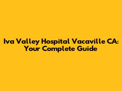 Iva Valley Hospital In Vacaville, CA: A Comprehensive Guide
