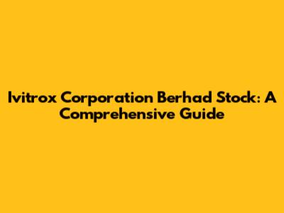 Ivitrox Corporation Berhad Stock: A Comprehensive Guide