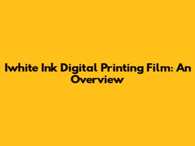 Iwhite Ink Digital Printing Film: An Overview