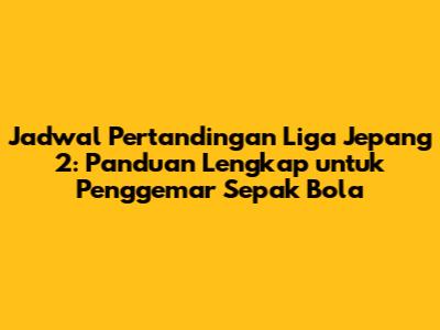 Selamat datang, guys! Apakah kalian penggemar setia sepak bola Jepang dan selalu ingin tahu jadwal pertandingan Liga Jepang 2? Kalian berada di tempat yang tepat! Di artikel ini, kita akan membahas secara mendalam tentang jadwal pertandingan Liga Jepang 2, mulai dari update terbaru, informasi lengkap mengenai tim-tim yang bertanding, hingga tips untuk tidak ketinggalan setiap aksinya. Mari kita selami dunia sepak bola Jepang yang penuh semangat ini!