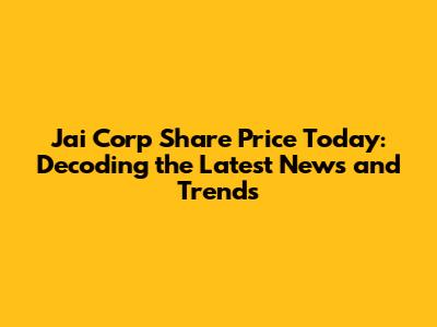 Jai Corp Share Price: Latest News & Investment Insights