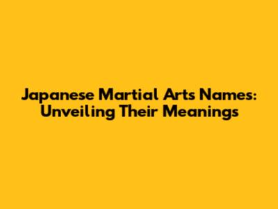 Japanese Martial Arts Names: Unveiling Their Meanings