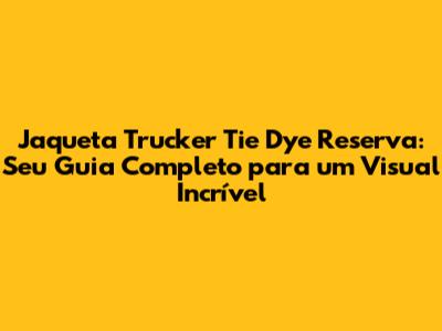 Jaqueta Trucker Tie Dye Reserva: Guia Completo E Dicas De Estilo