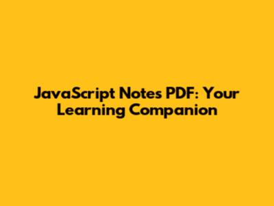 JavaScript Notes PDF: Your Learning Companion