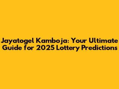Jayatogel Kamboja: Your 2025 Guide & Lottery Insights