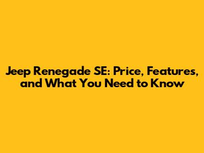 Jeep Renegade SE: Price, Features, And What You Need To Know