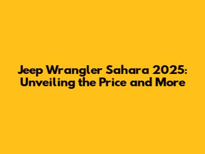 Jeep Wrangler Sahara 2025: Price And More