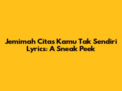 Hey guys! Are you ready for a sneak peek into the heartfelt lyrics of Jemimah Cita's song, "Kamu Tak Sendiri"? This song is a beautiful reminder that you're never truly alone, and Jemimah's soothing voice adds an extra layer of comfort to the message. In this article, we're going to dive deep into what makes this song so special, exploring the themes, emotions, and overall impact it has on listeners. Whether you're a long-time fan or just discovering Jemimah Cita, get ready to be moved by the powerful message behind "Kamu Tak Sendiri."