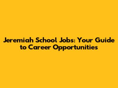 Jeremiah School Jobs: Your Guide To Career Opportunities