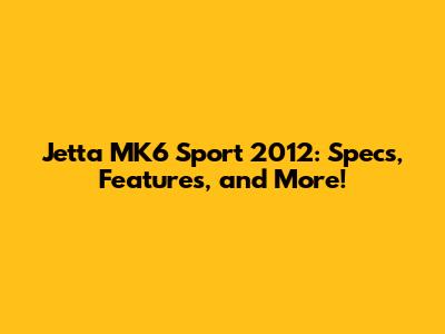 Jetta MK6 Sport 2012: Specs, Features, And More!